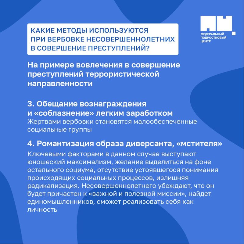 Вербовщики умело давят на эмоции, обещают «легкие деньги» или «важную миссию», но итог всегда один – сломанные судьбы. Мы, взрослые, должны уделять особое внимание тому, что происходит с ребенком В карточках – важная информация от заместителя директора Института информационной и медиабезопасности МГЮА Александра Глазкова.