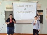 В рамках Дня правовой помощи детям в МБОУ Комсомольской СОШ был проведен ряд мероприятий, основной целью которых является правовое просвещение несовершеннолетних и формирование у них гражданской активности. Основными задачами профилактических мероприятий стало знакомство обучающихся с основными правами и обязанностями, изложенными в Конвенции о правах ребёнка, Конституции РФ, ситуациями и способами их применения в повседневной жизни. В проведении Дня правовой защиты детей были охвачены обучающиеся всех ступеней. Педагог-психолог Колесникова Т.Н. провела классный час " Я и мои права" для учеников 1-4 классов. Уполномоченный по правам ребенка Косаева Л. А.организовала для обучающихся 5-8 классов беседу с показом видеоматериалов " Права несовершеннолетних ". Заместитель директора по ВР Трегубова Л. В. организовала встречу-диспут в форме круглого стола для ребят 9-11 классов. Заведующая школьной библиотекой Тихоненко Н.В. организовала книжную выставку" Права и обязанности ребёнка". Советником директора по воспитательной работе была организована выставка рисунков " Я и мои права ".