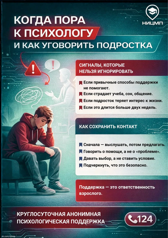 Также предложите ему воспользоваться анонимной и бесплатной горячей линией Всероссийского телефона доверия для детей, подростков и их родителей: 8 800 2000 122 или 124.